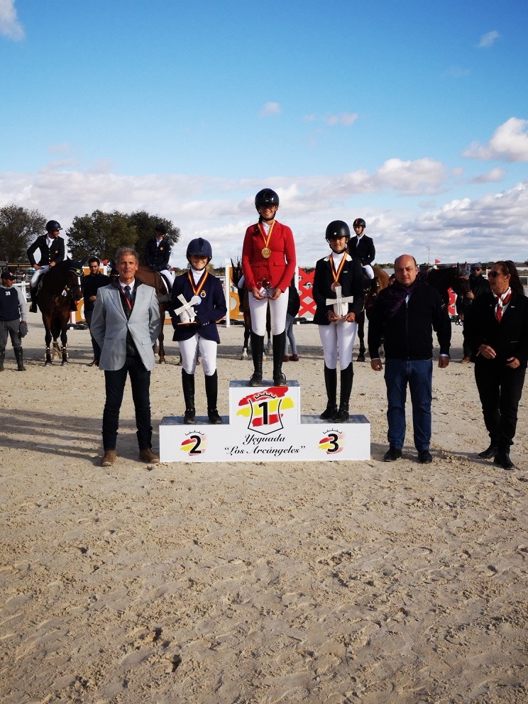 En infantiles, con 4 participantes en liza, las medallas estuvieron muy peleadas y Tania Montero que ganó el ORO con ALEMANIA, mantuvo las 2 décimas de ventaja que obtuvo en la Doma sobre la anterior campeona, Enma Shonvandt y SEA ALEGRE. El BRONCE fue para Claudia Heredia y BALLYLEE VILLA LASS