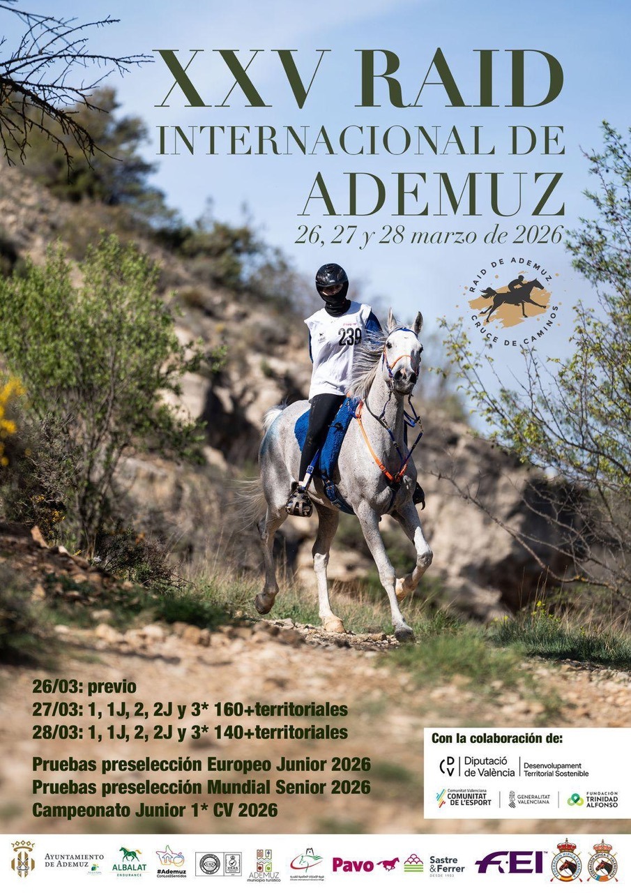 Este fin de semana se disputará el Raid Internacional de Ademuz, con la celebración de pruebas internacionales CEI1*, CEI2* y CEI3* entre los días 26 y 28 de marzo, reuniendo a más de 90 binomios nacionales e internacionales en una de las citas más completas del calendario de resistencia ecuestre en España. La competición se […]