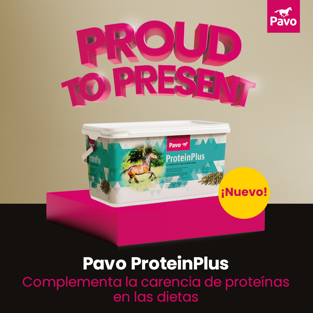 Por otro lado, Pavo ProteinPlus es un aporte extra de proteína para optimizar la salud general del caballo. Este suplemento viene a suplir la carencia de proteínas de forrajes de baja calidad, dietas pobres y sin cereales, o en el caso de caballos muy delgados o aquellos que requieren un aporte más elevado de proteínas, como yeguas en gestación y lactación, caballos de deporte, mayores y jóvenes. Así, ProteinPlus ofrece proteínas de alta calidad con un aporte extra de aminoácidos esenciales para un adecuado desarrollo y crecimiento del animal.