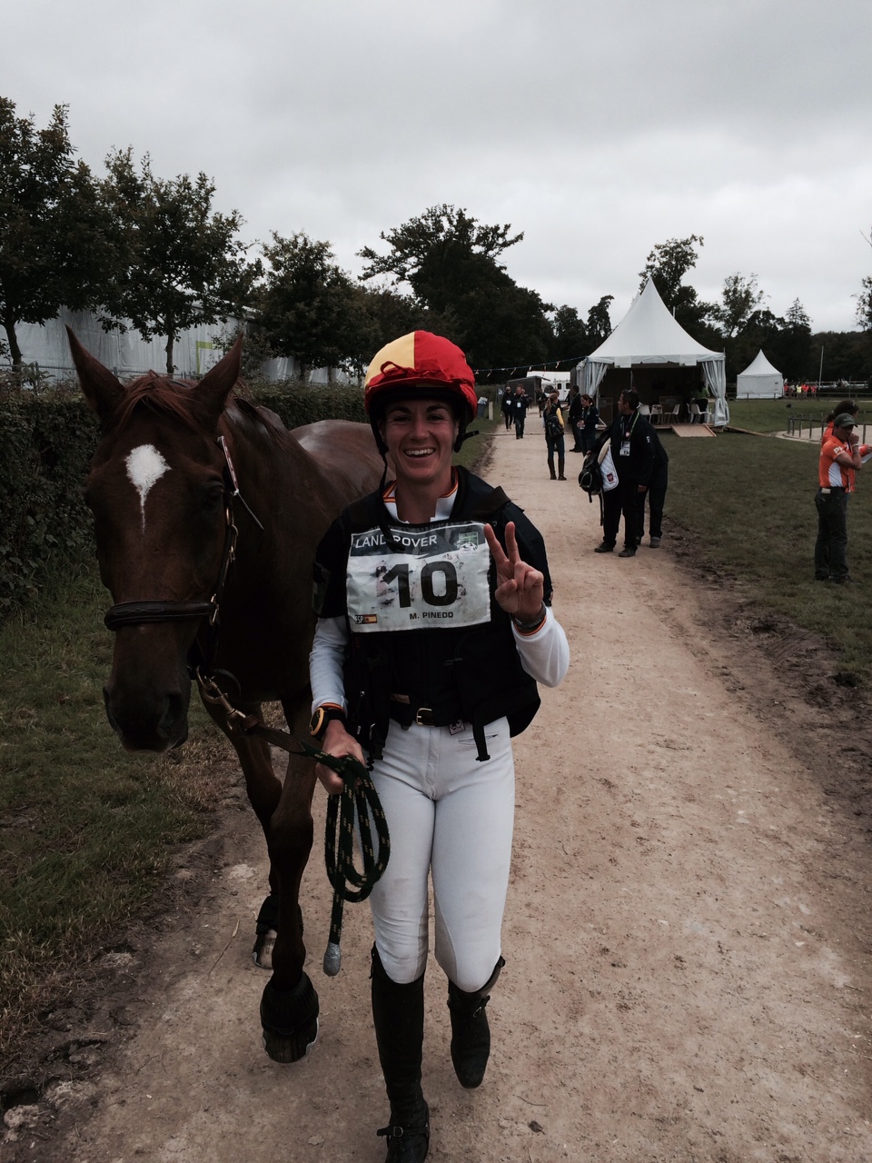En lo que nos atañe ha sido un día agridulce. La alegría del recorrido de María y Cristina Pinedo, que terminaron con un parón y exceso de tiempo la primera y con solo exceso de tiempo la segunda, fue seguida por una inesperada eliminación de Carlos Díaz, por caída en el obstáculo nº 10, posteriormente Albert Hermoso con la presión de terminar para poder clasificar al equipo hizo dos rehúses y penalidad por tiempo. España acabó 9 por equipos y cristina Pinedo Con Helena XII, mejor español en el puesto 31